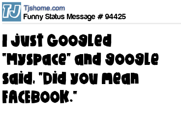 X I just Googled "Myspace" and google said, "Did you mean FACEBOOK."