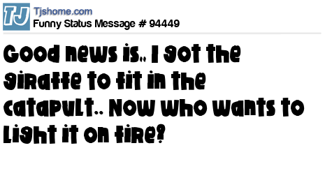 X is Good news is,, I got the giraffe to fit in the catapult.. Now who wants to light it on fire?