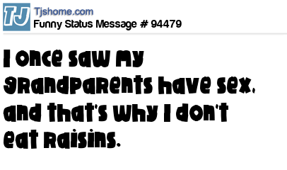 X is I once saw my grandparents have sex, and that's why I don't eat raisins.