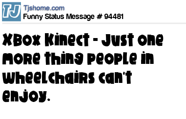 - # 94501 X-Box Kinect - Just one more thing people in wheelchairs can't enjoy.