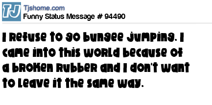- # 82708 I refuse to go bungee jumping...I came into this world because of a broken rubber, I'm not leaving because of one!!