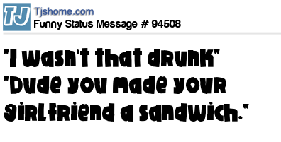 - # 76369 #iwasntthatDrunk "Dude, you made your girlfriend a sandwich!"