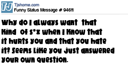X is Why do I always want “that kind” of s*x when I know that it hurts you and that you hate it? Seems like you just answered your own question.