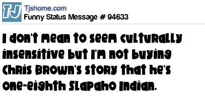 X I don't mean to seem culturally insensitive but I'm not buying Chris Brown's story that he's one-eighth Slapaho Indian.