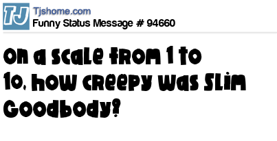 X says On a scale from 1 to 10, how creepy was Slim Goodbody?