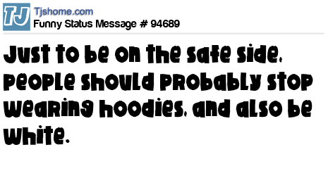 X is Just to be on the safe side, people should probably stop wearing hoodies, and also be white.