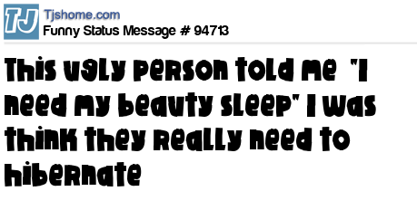 - # 91763 I hate when ugly people say "I need my beauty sleep" LOL NO! you need to hibernate.