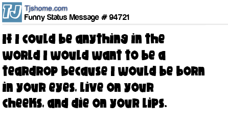 X is If I could be anything in the world I would want to be a teardrop because I would be born in your eyes, live on your cheeks, and die on your lips.