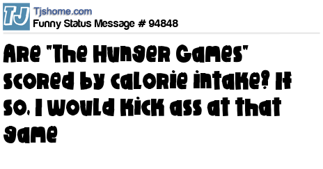 X Are "The Hunger Games" scored by calorie intake? If so, I would kick ass at that game
