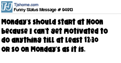 X Monday's should start at Noon because I can't get motivated to do anything till at least 12:30 or so on Monday's as it is.