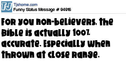 X For you non-believers, the Bible is actually 100% accurate. Especially when thrown at close range.