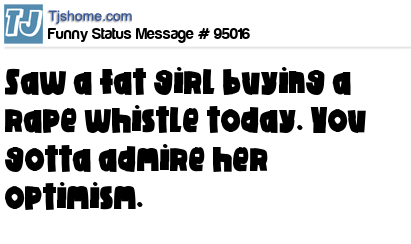 X says Saw a fat girl buying a rape whistle today. You gotta admire her optimism.