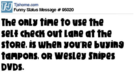 X is The only time to use the self check out lane at the store, is when you're buying tampons, or Wesley Snipes DVDs.