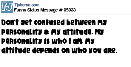 - # 115739 Don't get my attitude confused with my personality. My personality is who I am, my attitude depends on who you are.