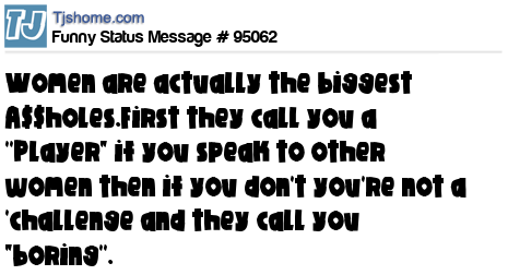 X Women are actually the biggest A$$holes.First they call you a ''Player" if you speak to other women then if you don't you're not a 'challenge and they call you "boring''.