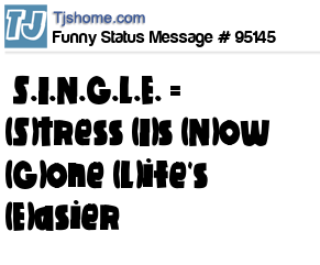 X is S.I.N.G.L.E. = (S)tress (I)s (N)ow (G)one (L)ife's (E)asier