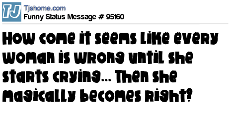 X says How come it seems like every woman is wrong until she starts crying... Then she magically becomes right?