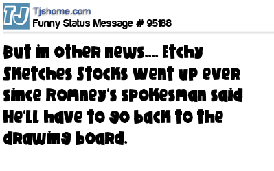 X But in other news.... Etchy Sketches Stocks Went up ever since Romney's spokesman said He'll have to go back to the drawing board.