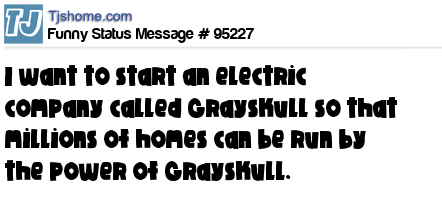 X I want to start an electric company called Grayskull so that millions of homes can be run by the power of Grayskull.