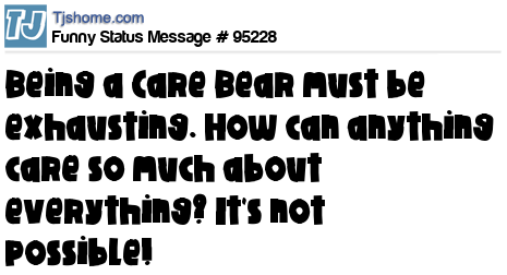 X Being a Care Bear must be exhausting. How can anything care so much about everything? It's not possible!