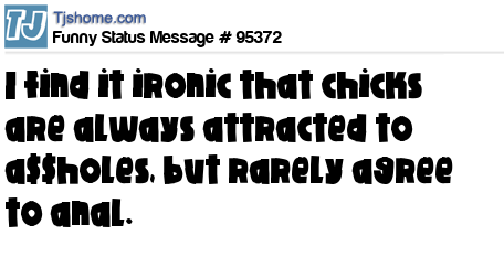 X I find it ironic that chicks are always attracted to a$$holes, but rarely agree to anal.