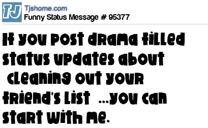 X If you post drama filled status updates about “cleaning out your friend's list” ...you can start with me.
