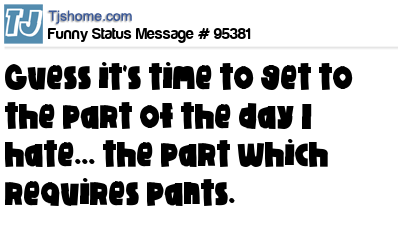 - # 111628 Just got fired from my part time job working from home because "Apparently" when people call for support I shouldn't tell them that I am not wearing pants.