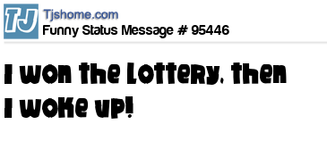 - # 141855 If I ever win the lottery and someone asks me for money I'm going to give them a dollar and say "Here. Go play the Lottery. That's what I did."
