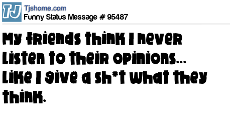 X  My friends think I never listen to their opinions... like I give a sh*t what they think.