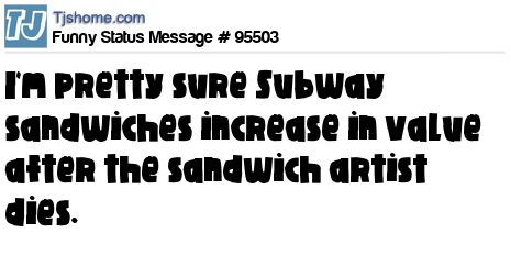 X I'm pretty sure Subway sandwiches increase in value after the sandwich artist dies.