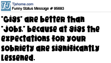X "Gigs" are better than "jobs," because at gigs the expectations for your sobriety are significantly lessened.