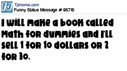 X  I will make a book called Math for dummies and I'll sell 1 for 10 dollars or 2 for 30.