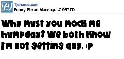 X Why must you mock me humpday? We both know I'm not getting any. :p