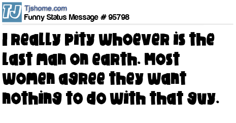 X I really pity whoever is the last man on earth. Most women agree they want nothing to do with that guy.