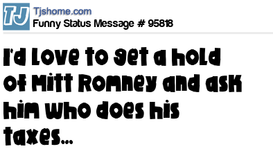 - # 95339 If I hit the $500 Million remind me to get a hold of Mitt Romney and ask him who does his taxes