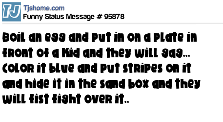X Boil an egg and put in on a plate in front of a kid and they will gag... Color it blue and put stripes on it and hide it in the sand box and they will fist fight over it..
