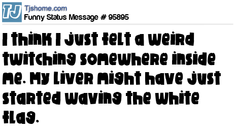X I think I just felt a weird twitching somewhere inside me. My liver might have just started waving the white flag.