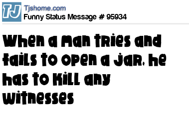 X says When a man tries and fails to open a jar, he has to kill any witnesses