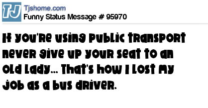 X says If you're using public transport never give up your seat to an old lady... That's how I lost my job as a bus driver.