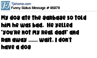 X My dog ate the garbage so told him he was bad,, He yelled "you're not my real dad!" and ran away ........ wait,, I don't have a dog
