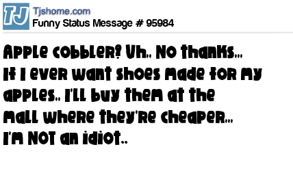X Apple cobbler? Uh,, No thanks,,, If I ever want shoes made for my apples,, I'll buy them at the mall where they're cheaper,,, I'm NOT an idiot..