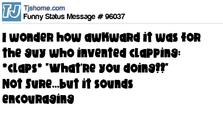 X is I wonder how awkward it was for the guy who invented clapping: *claps* "What're you doing??" Not Sure...but it sounds encouraging