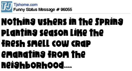 X is Nothing ushers in the Spring planting season like the fresh smell cow crap emanating from the neighborhood....