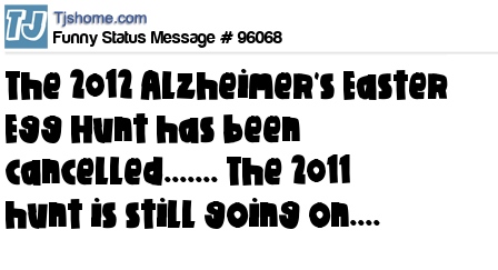 X is The 2012 Alzheimer's Easter Egg Hunt has been cancelled....... The 2011 hunt is still going on....