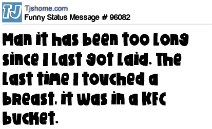 X says Man it has been too long since I last got laid. The last time I touched a breast, it was in a KFC bucket.