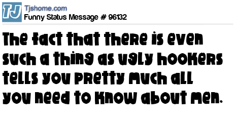 X says The fact that there is even such a thing as ugly hookers tells you pretty much all you need to know about men.
