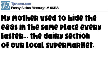 X says My mother used to hide the eggs in the same place every Easter... the dairy section of our local supermarket.