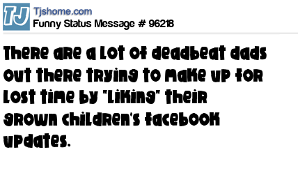 - # 121387 Soon there will be a lot of deadbeat dads trying 2 make up for lost time by “Liking” their grown kid’s Facebook updates.