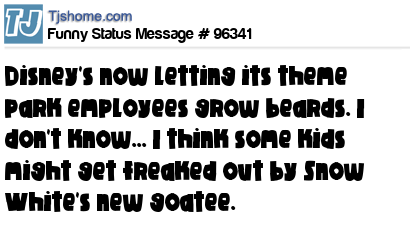 X says Disney's now letting its theme park employees grow beards. I don't know... I think some kids might get freaked out by Snow White's new goatee.