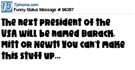 X says The next president of the USA will be named Barack, Mitt or Newt! You can't make this stuff up...